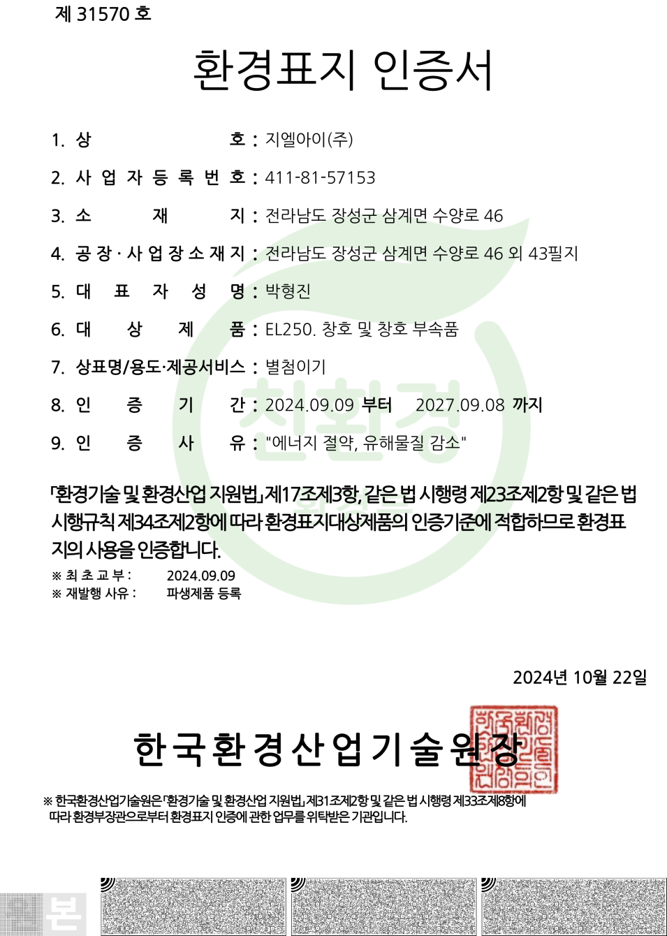 - 인증명: 환경표지인증서